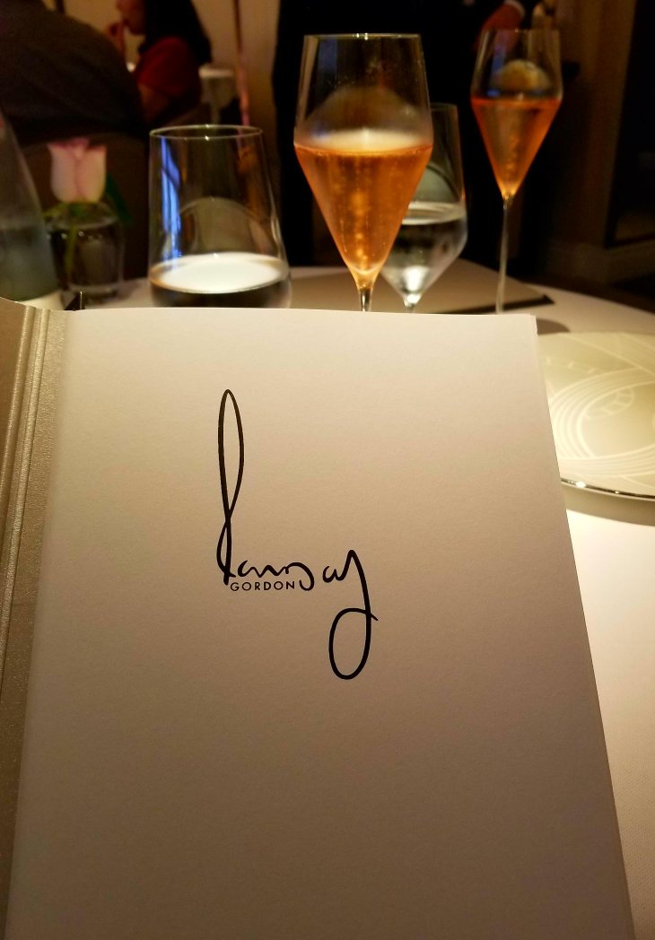 Travis and I dressed for the occasion – suit and tie for the mister, a work dress for me. Ever prepared, I wore my red trench coat in anticipation of London weather surprises. Mind you, always overdress for Mr. Ramsay. If the wait staff are better dressed than you, then there’s a problem.