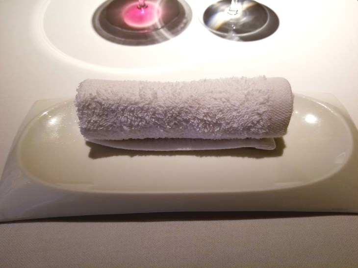 At 11:40AM, we ordered an Uber Exec to chauffeur us to Restaurant Gordon Ramsay. 45 minutes of high noon traffic later, we arrived, sweaty and hungry, since our Uber driver preferred to roll down his window rather than run the AC despite the humid day. The restaurant lighting was our saving grace. I could hide my shiny face, as the two recessed lights above our table were designed specifically to showcase our food, not our facial situations. C’est la vie.