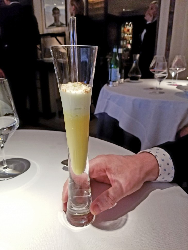 Now came a warm towel and a palate cleanser. We sipped lemon sorbet smoothies through glass straws, pausing to digest and enjoy our surroundings and each other.