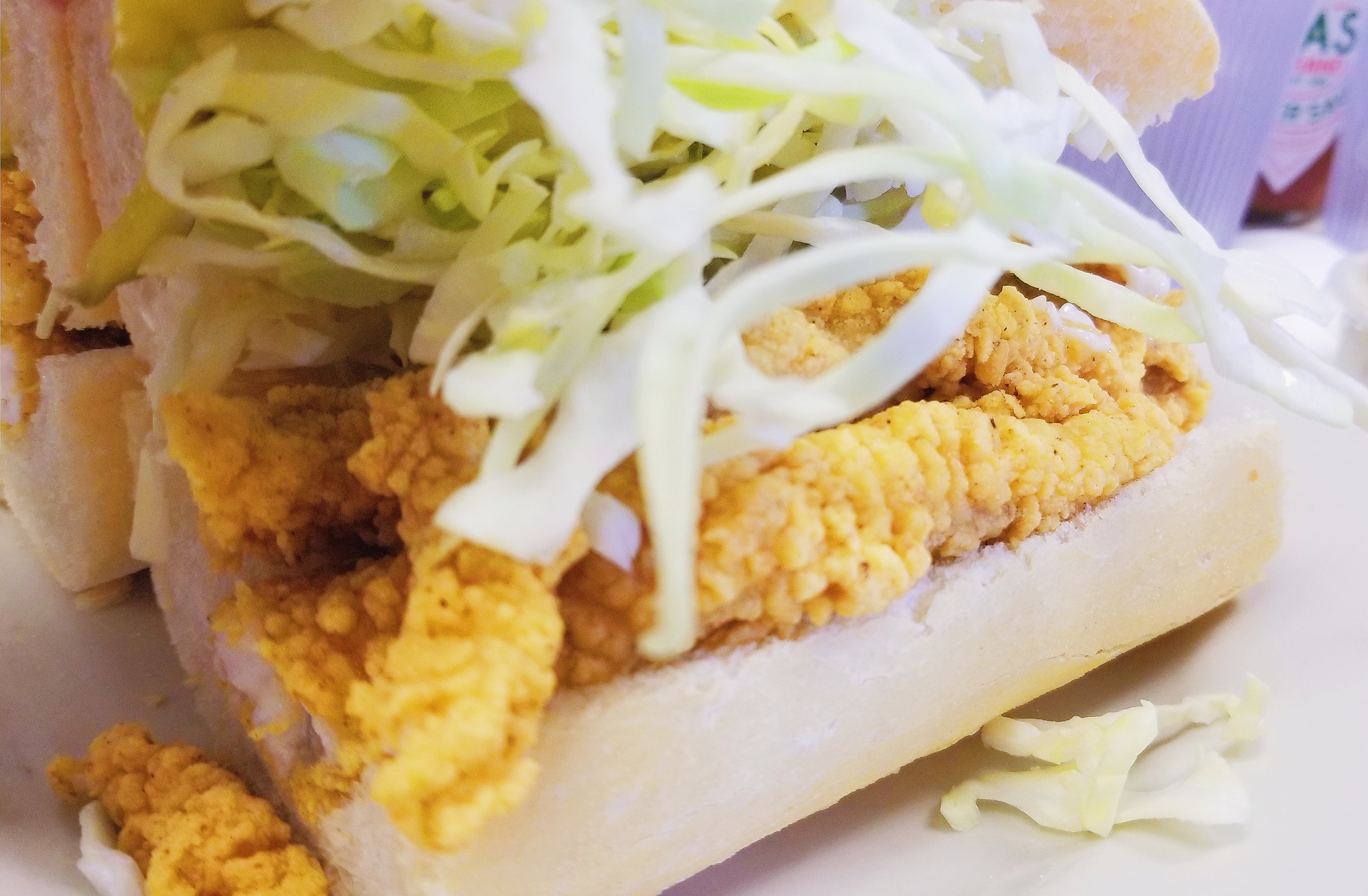 We stepped up to the counter to place our order, and got our food ticket and a glass of water. We chose a seat in the middle of the front of the house, and a waitress grabbed our ticket for service. A short while later, our plates appeared – lightly toasted rolls encircling our fried fish.